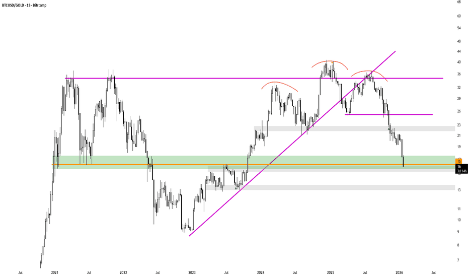 BTCGeralmente quando perde um canal, para saber um possivel alvo você dobra o canal na direção contraria e tem uma ideia no grafico onde o preço pode ir. uma coincidência nessa situação e que o alvo limite bate perfeitamente com 0,61 de fibo e tbm alvo do pivô de baixa caso o mes termine com uma vela v