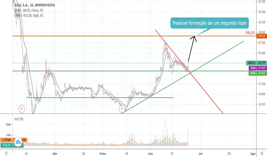 O papel azul4 respeitou o suporte e rompeu uma possível LTB, conforme demonstramos na última análise, fechando com uma alta de quase 10% no último pregão, a R$22,50. Vamos observar, se o apoio governamental se confirmar, a Azul segue como a principal aerea a se beneficiar.