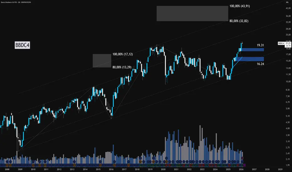 Felizmente as ações estão iniciando tendência de alta (longo prazo). Com isso, bora ligar os canais paralelos. Bradescão é a primeira vítima "canalizada" rsrs;