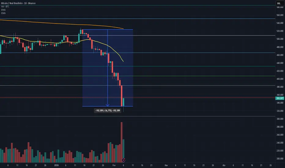 A análise gráfica do Bitcoin foi realizada utilizando a ferramenta de Retração de Fibonacci, aplicada sobre o último movimento significativo de alta/baixa do preço, com o objetivo de identificar níveis técnicos de suporte e resistência e possíveis zonas de reação do mercado.