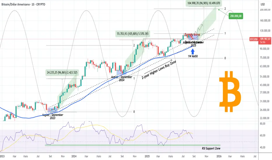 Um facto muito interessante é que o período de agosto a setembro desde 2023 tem sido uma formação de fundo, com a Zona de Suporte do RSI de 1S, fornecendo uma confirmação adicional para uma entrada de compra de longo prazo, também presente durante a correção liderada pela Tariff de março a abril de 2025.