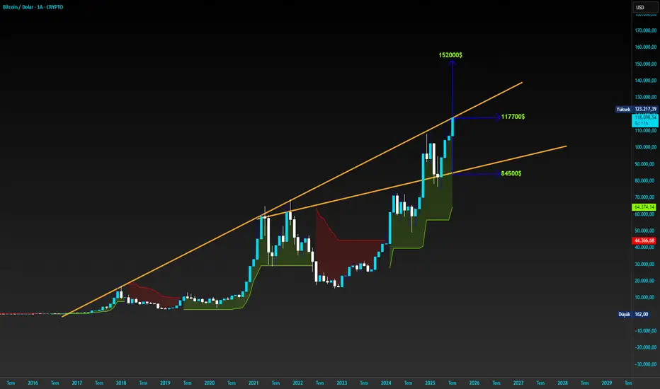 Btc Aylık grafikte ekranda gördüğünüz gibi aylık takıldığı yer çok kritik bu seviyeler aklınızda bulunsun..
