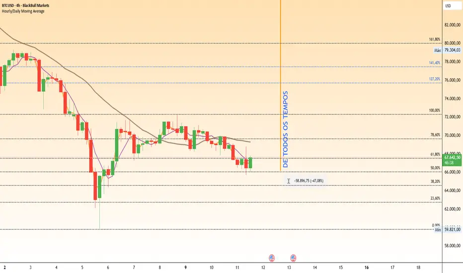 A retração levou o Bitcoin de volta a US$ 70.000 e agora pressiona as médias móveis de 10 e 20 horas. Será que chegou a hora de soar o alarme? O Bitcoin está cerca de 47% abaixo de seu recorde histórico.