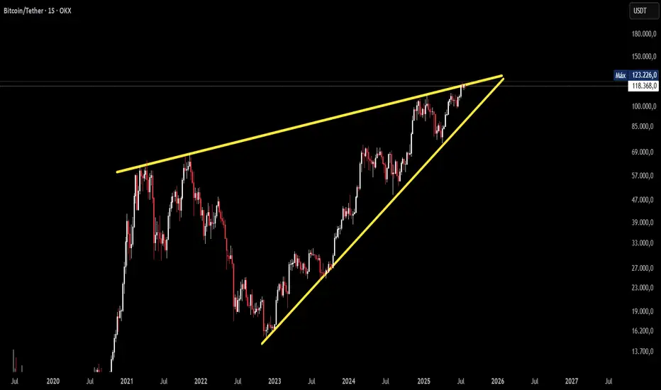 🔹 Resistência Crítica (Topo da Cunha): $123.000–$125.000