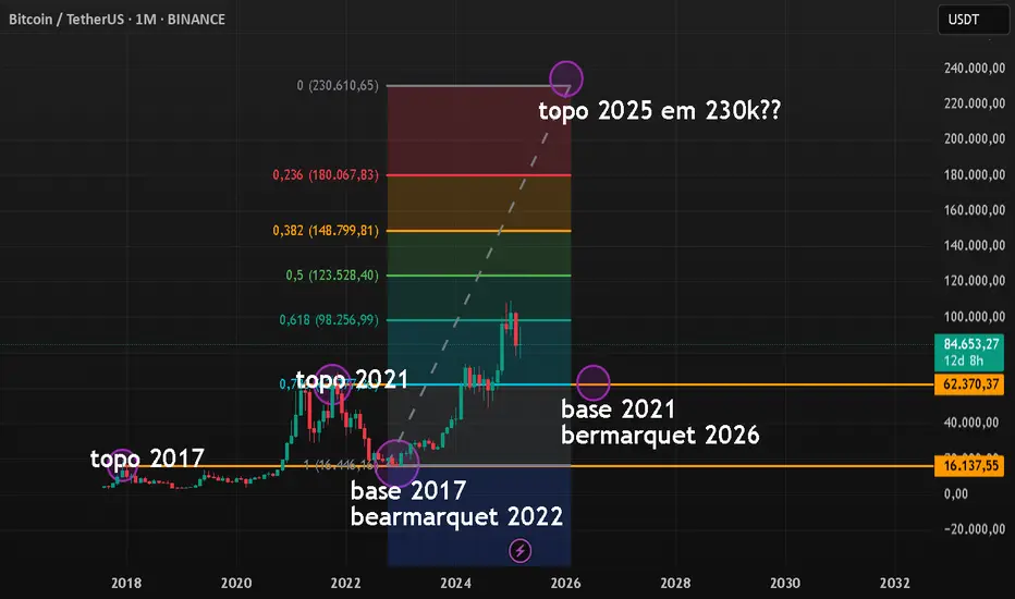 Se todo Bearmarquet, o Bitcoin cai para 0,78 da fibonacci atingindo seu topo histórico anterior...isso quer dizer que ele ainda irá subir para 230K em 2025 para no bearmarquet cair para 69k, que seria o Topo histórico anterior???