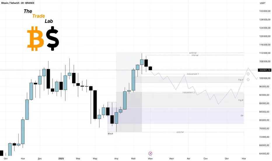 После достижения зоны FVG A я считаю более вероятным дальнейшее движение к Inducement 2 и FVG B, потому что рынок стремится восстановить баланс.