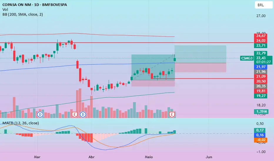 Nos próximos dias vamos medir a febre, se não cruzar o SMA200 para baixo a chance de bater 23,90 é alta.