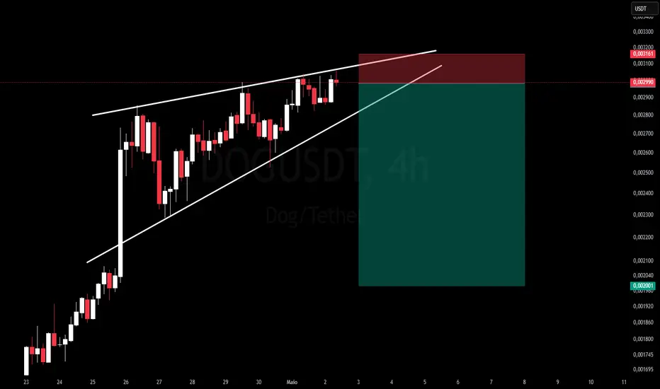 DOG/USDT – Alerta de possível reversão com cunha ascendente