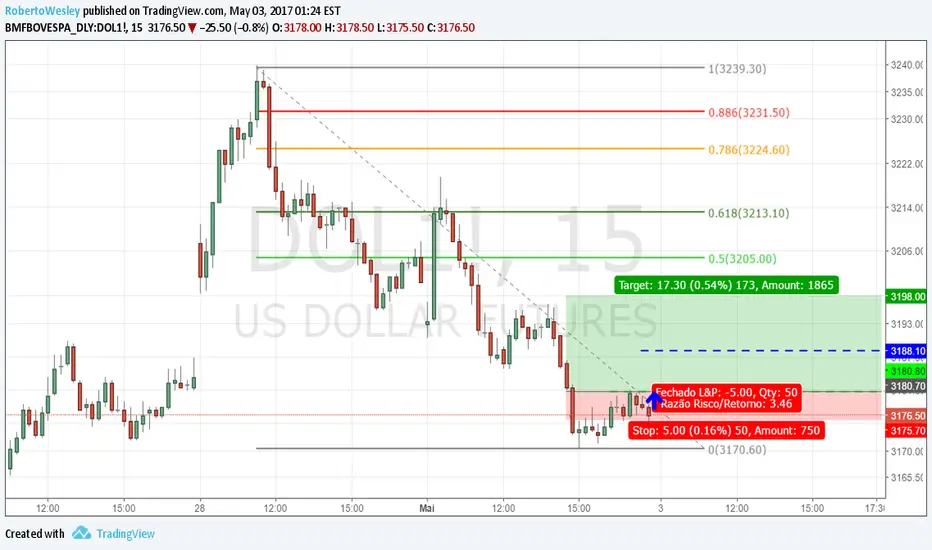 Parcial feita. Stop deve ser movido para o preço de entrada 3181.Nota