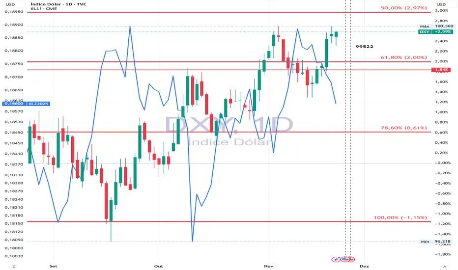 DXY em 100 pontos: O índice dólar está em uma zona de suporte histórico. Relatórios recentes indicam que o Fed mantém cautela sobre cortes de juros, o que sustenta o dólar.
