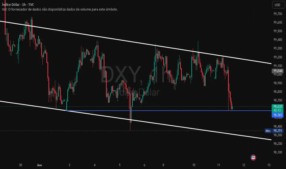 DXY esta dentro de um canal de baixa, nesse momento tentando formar um OCOi(Ombro Cabeça Ombro Invertido) esse movimento pode atrapalhar a valorização do mercado cripto