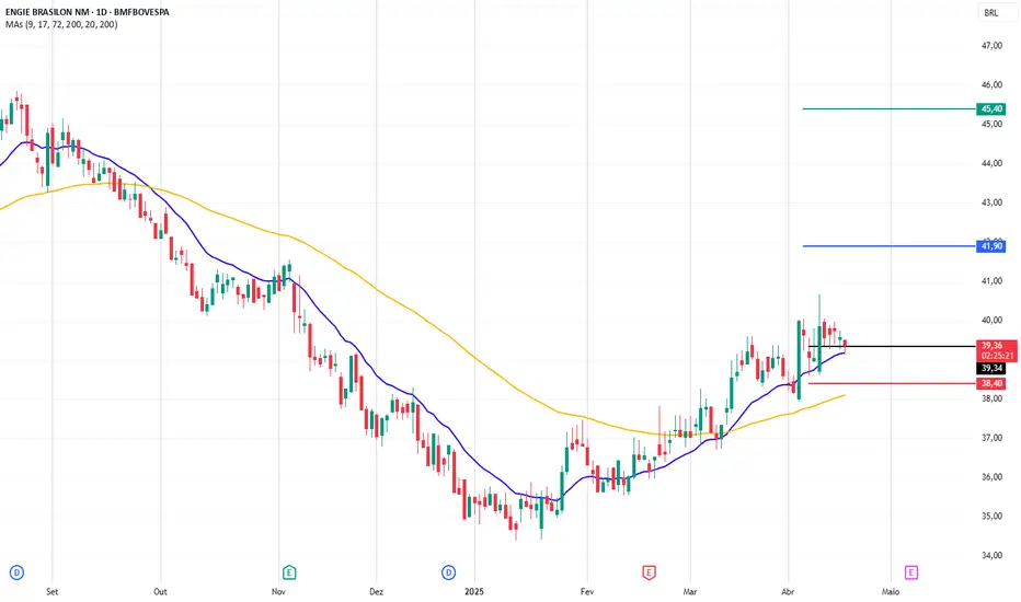 Ideia de Swing Trade para EGIE3 que tem agora pivot de alta acima das medias, o que pode indicar uma possivel reversão de tendencia.