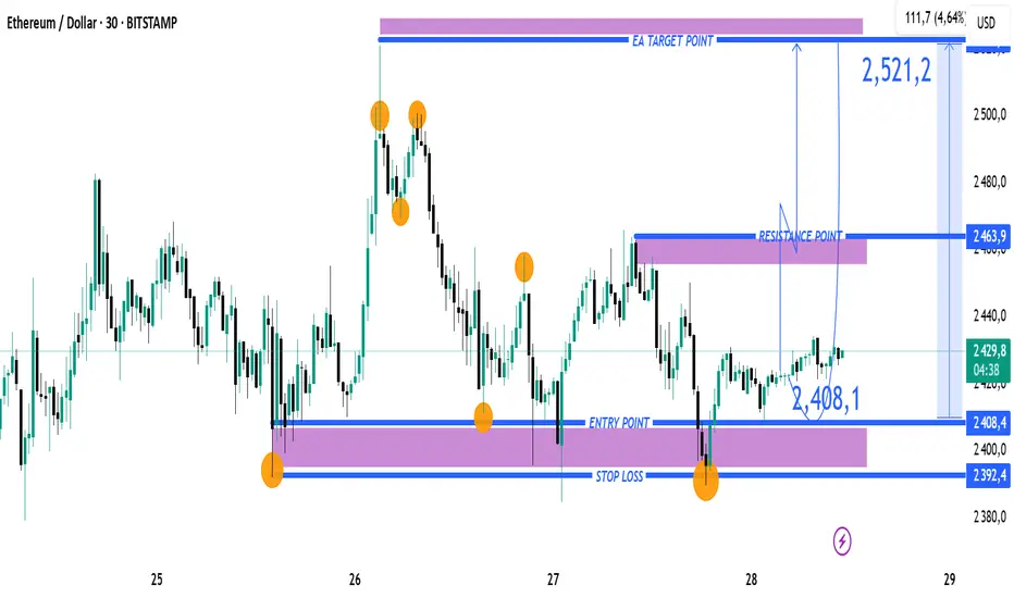 🎯 Stratégie suggérée : Position longue avec une entrée autour de 2 408 USD, stop loss à 2 392 USD, et objectif de prise de bénéfice à 2 522 USD.