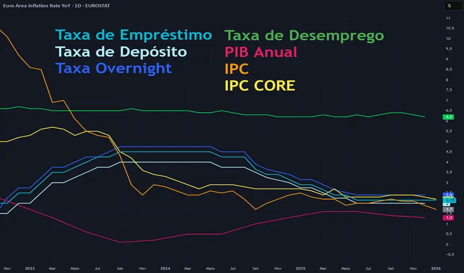 Em declarações recentes, o economista-chefe da instituição, Philip Lane, afirmou que, caso a economia evolua conforme o cenário-base, é improvável que haja mudanças nas taxas no curto prazo. Inclusive, o mercado não precifica alterações nos juros ao longo de 2026.