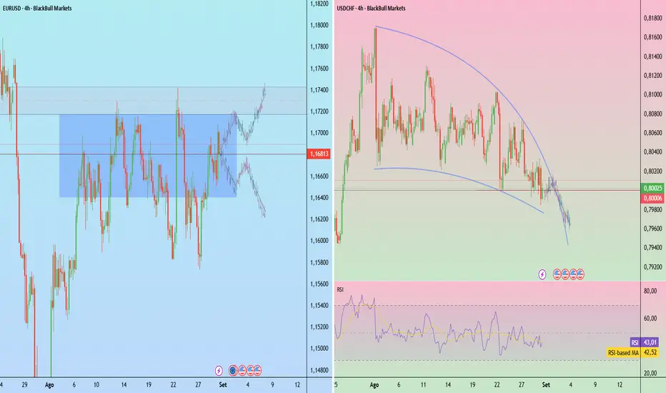 Faixa do EUR/USD e risco de queda do USD/CHF nas folhas de pagamento