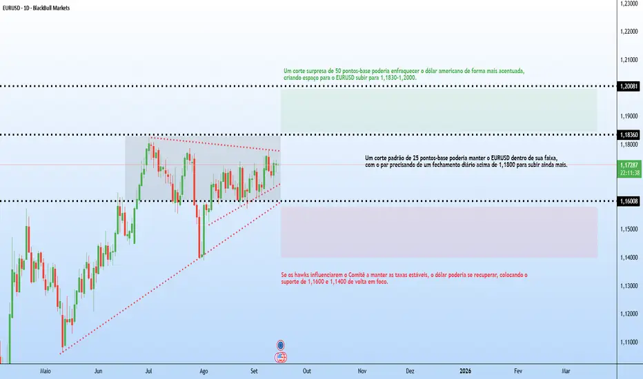Há também a possibilidade de uma mudança maior. Se o Senado dos EUA confirmar a nomeação de Stephen Miran para o Conselho do Fed na segunda-feira, ele poderá ser empossado a tempo para a reunião, e alguns especulam que ele poderá votar a favor de um corte de 50 pontos-base. Os governadores Bowman e Waller, que anteriormente discordaram de forma dovish, também podem apoiar uma redução maior.