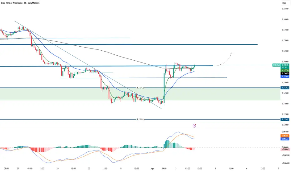 ✅ Altista: Um rompimento confirmado acima de 1,15800 com volume pode impulsionar o preço a 1,16400, apoiado por fortalecimento do euro ou fraqueza do dólar.