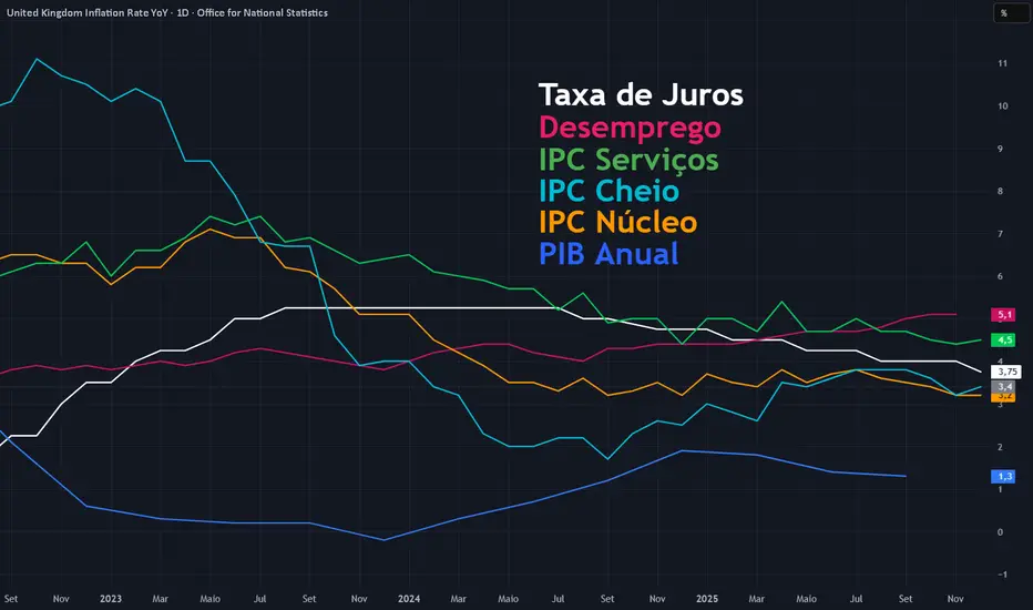 Embora o mercado projete que os juros britânicos comecem a cair ao longo de 2026, o banco central deve evitar qualquer sinalização clara nesta reunião sobre quando ou em que ritmo os cortes ocorrerão, aguardando maior clareza sobre a trajetória da inflação.