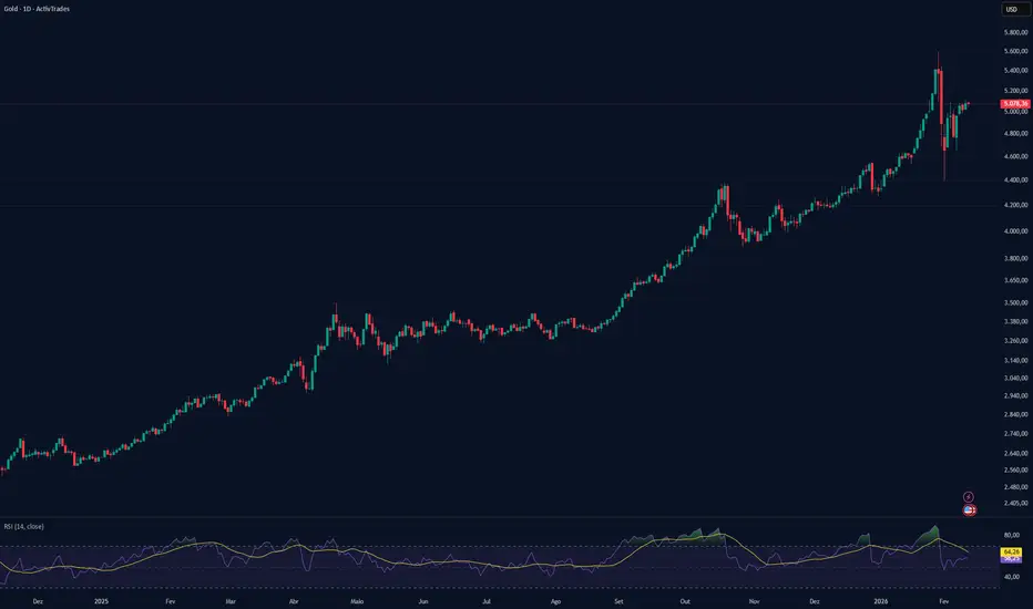 O preço do ouro registou uma ligeira queda nas primeiras horas de negociação de quinta-feira, mas mantem-se confortavelmente acima do importante nível psicológico dos 5.000 dólares. A divulgação de ontem do relatório Nonfarm Payrolls revelou dados de emprego acima do esperado, com a economia norte-americana a criar 130.000 postos de trabalho em janeiro, bem acima da previsão de 70.000 e da leitura anterior de 48.000. Os investidores interpretaram estes números como um sinal de resiliência da maior economia do mundo, reduzindo a necessidade de estímulos monetários no curto prazo. Como resultado, as expectativas de que a Reserva Federal mantenha as taxas de juro inalteradas na reunião de março subiram para 95%, apoiando o fortalecimento do dólar norte-americano face às restantes principais divisas. Os investidores voltam agora a sua atenção para a divulgação dos dados de inflação nos Estados Unidos, prevista para sexta-feira. Uma leitura da inflação acima das expectativas (acima de 2,5%) reforçaria a perspetiva de que um alívio da política monetária não é iminente, sustentando um maior fortalecimento do dólar e criando pressões adicionais sobre o ouro. Por outro lado, um relatório do IPC abaixo do previsto poderia penalizar o dólar, apoiando o preço do metal precioso.