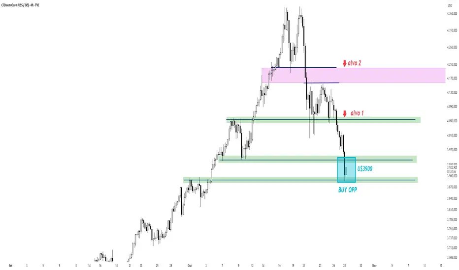 O ouro finalmente corrigiu até o ponto onde eu estava esperando há muitos dias para poder tomar uma posição comprada... e uma vez que chegou lá, não irei hesitar em COMPRÁ-LO.