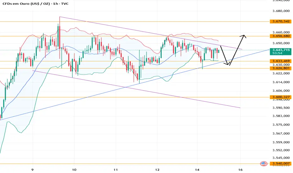 Resistência no Gráfico de 1 Hora: 3647, Suporte: 3633