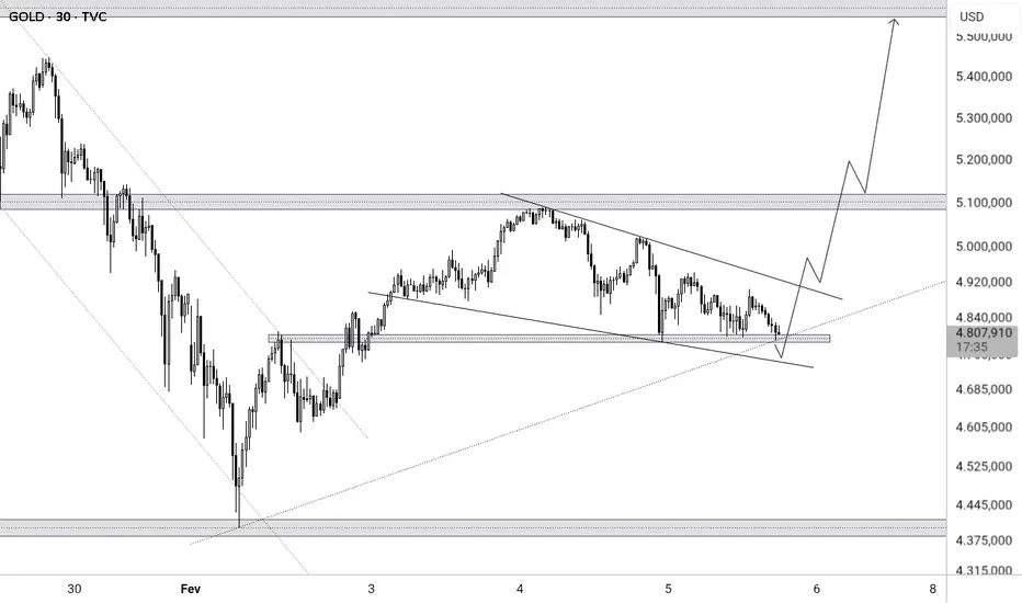 Finalizando a 4 onde de Elliot a onda corretiva mais complicada, figura de flâmula corretiva sinal de consolidação de tendencia de alta e 50% de fibonacci. Tudo indicando retomada de alta.