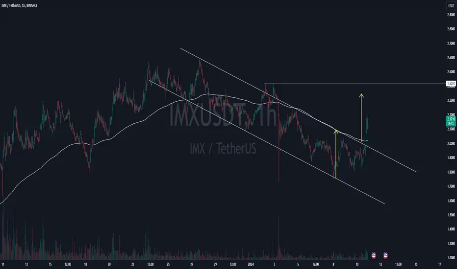 Olá traders! Hoje vamos analisar o ativo Immutable (IMX/USDT), que recentemente apresentou um rompimento significativo. O preço rompeu um canal de baixa, seguindo em uma trajetória ascendente. Apesar de estar um pouco atrasado no movimento, é interessante observar que o alvo da projeção da altura do canal ainda não foi alcançado, sugerindo um potencial de continuidade de alta.