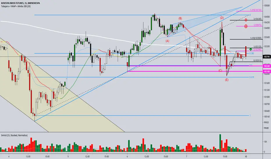 Caso rompa a linha da cabeça do pivô de alta o IND pode buscar o alvo de uma dessas projeções de fibonacci.