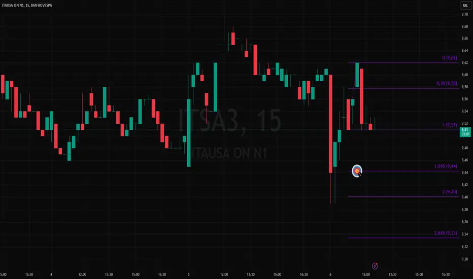 No gráfico de 5 minutos da ITSA3, rompeu a última perna de alta e poderá chegar no(s) alvo(s).