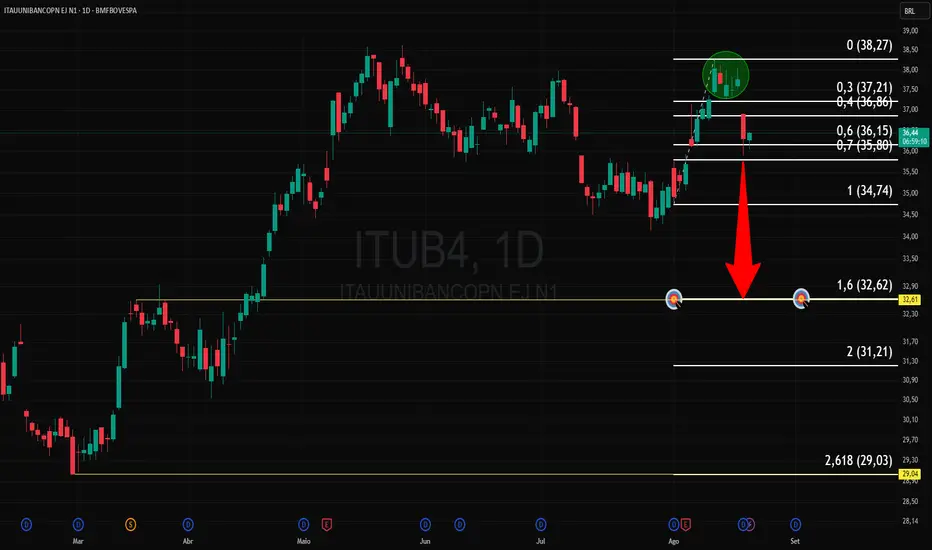 Essa puxada do início do mês pra cima, até a ilha de reversão, dá contexto de uma retração mais profunda, digo que há 70% de chance de cair abaixo da linha de 100% da retração do mês de agosto.