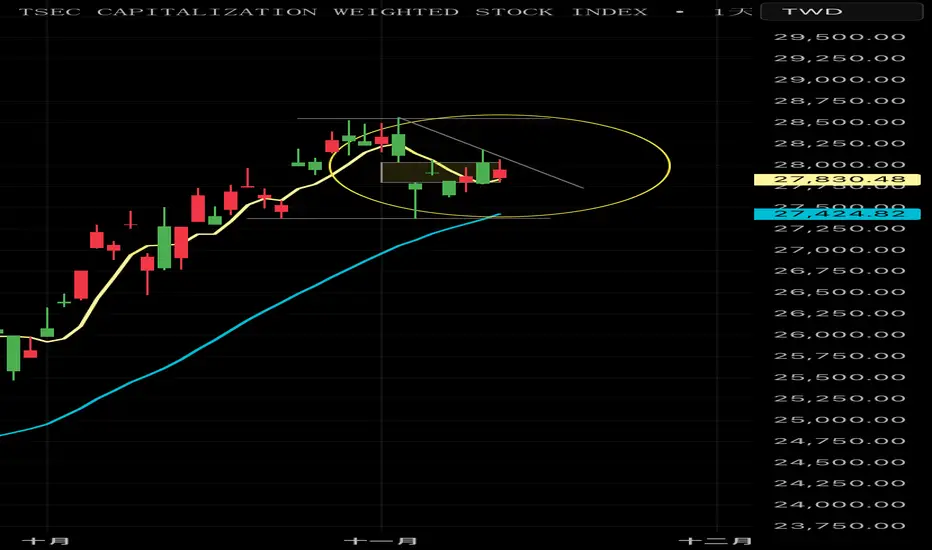 加權週三收漲162點,雖站回5ma之上但一樣還未封閉空方缺口且短線還有一下降壓力!綜合上述各指數表線來看,若要續攻必需突破空方缺口壓力及短線下降壓力!若跌破缺口將回測前低27373!
