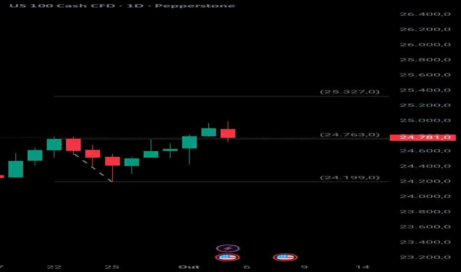 Nasdaq broke the previous day's high and tested support, closing above it. We're at a historic high with no defined resistance levels, so the Fibonacci expansion tells us exactly where the index's price will go next week. 25325