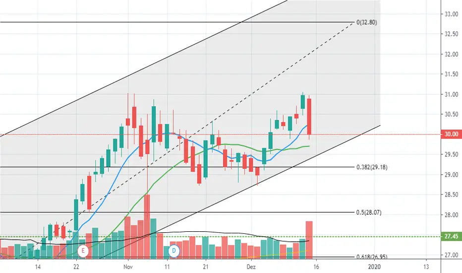 PETR4 está numa super tendência no gráfico semanal subindo rente a média de 8 períodos. Os movimentos de queda que houve no diário foram de pullback, o que são normais em tendências. O que a maioria das pessoas não aprenderam é que os ativos não sobem ou caem em linha reta. De acordo com a Teoria de Dow, considerado o Pai da Análise Técnica e um dos Fundadores do Wall Street Journal e do ìndice Dow Jones, é que o mercado se movimenta em tendências, onde a tendência de alta possui topos e fundos ascendentes e a de baixa topos e fundos descendentes. PETR4 está fazendo um pullback no gráfico diário em direção a média de 20 períodos para retomar a tendência altista e fazer novos topos mais altos. Nosso alvo de fibonacci segue em R$ 32,80 desde o mês passado (Novembro).