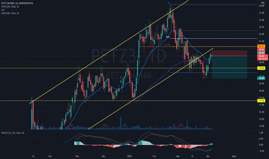 Venda em PETZ3 formando possível topo em pullback de uma LTA rompida.