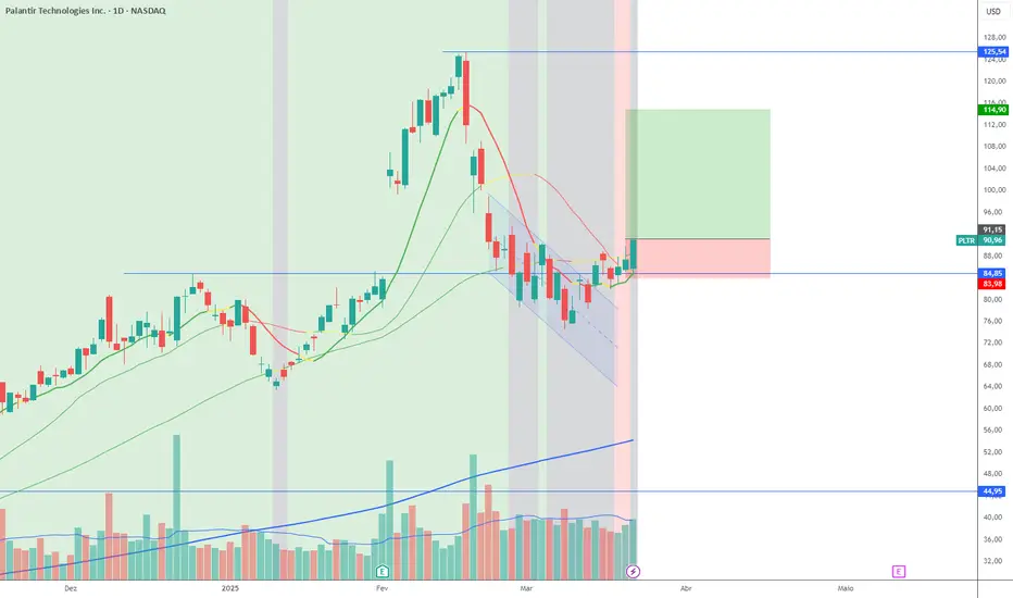Caso rompa os $91 com volume acima da média, pode resumir a tendência de alta mesmo em períodos turbulentos.