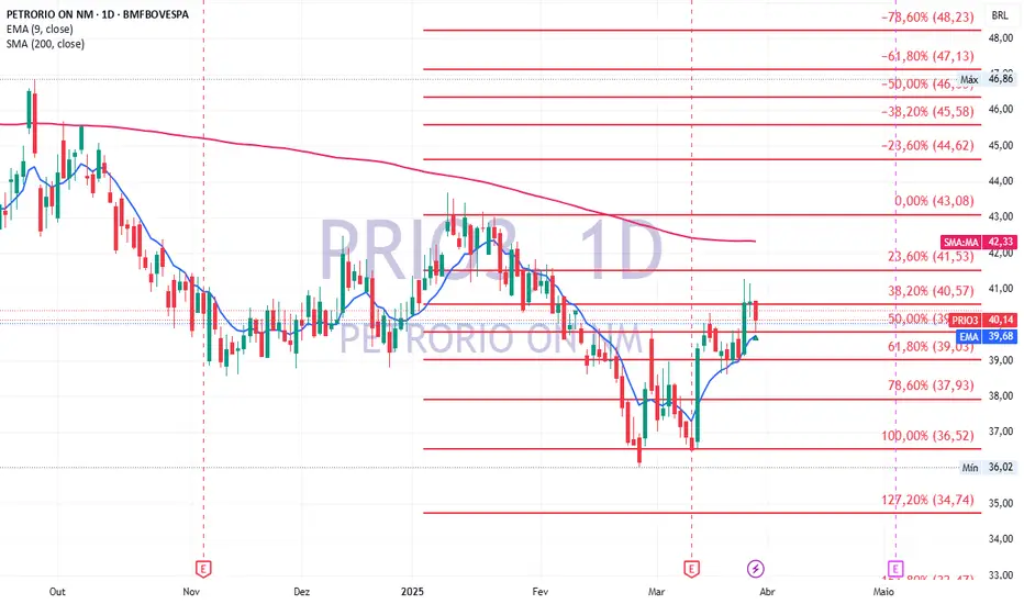 O ativo continua abaixo da MM 200, o que geralmente indica uma tendência de baixa no longo prazo.