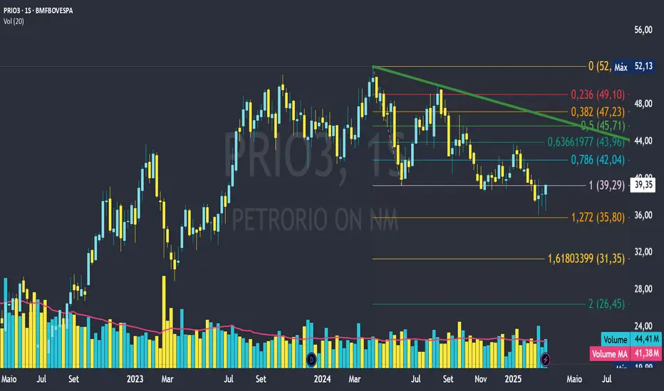 A ação PRIO3 fechou em **39,35** no dia 14/03/2025, e a briga no preço está intensa. O ativo segue em tendência de alta, mas pode dar aquele clássico **respiro do morto**, ou seja, uma pausa para decidir se continua subindo ou se despenca.