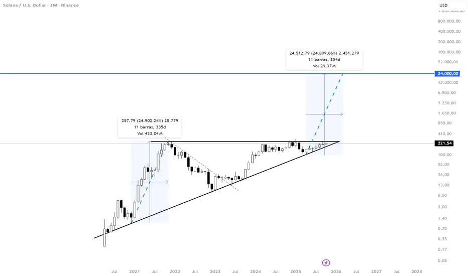 A Solana está se movendo dentro de um triângulo ascendente, formado por: