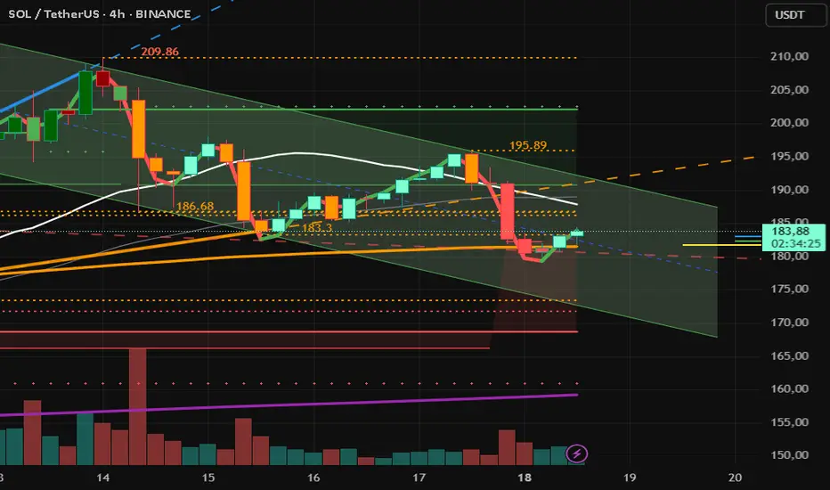 SOL presa no range de 190 (caso BTC busque 118k) e 173 (caso BTC caia para 107k).