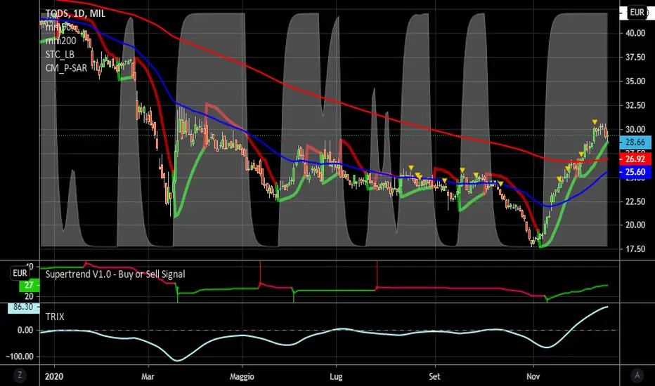 Supertrend, Stc e Trix positivi.