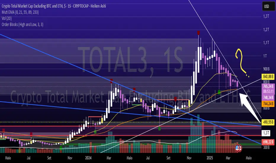Estamos há 17 semanas em queda1! Total 3 Timeframe semanal formando um triângulo simétrico. O q vc acha? Reversão ou continuidade das quedas em Altcoins?