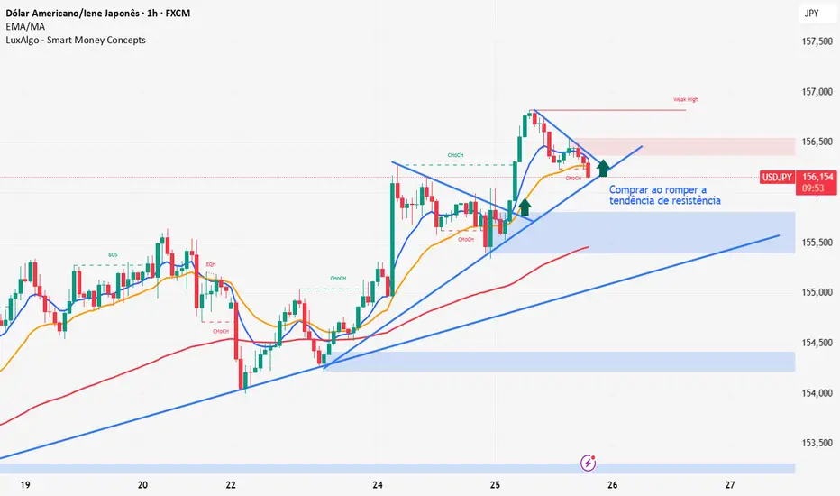 O USD/JPY está subindo tanto no H1 Quanto no H4, o que é uma condição para que eu compre, mas é necessário que a vela de compra rompa a linha de tendência de resistência.