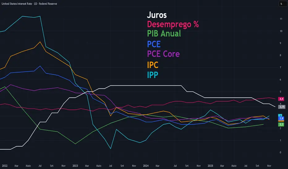 No campo inflacionário, o Índice de Preços das Despesas de Consumo Pessoal (PCE) — métrica preferida do Fed — registrou alta anual de 2,8% em novembro, ligeiramente acima do esperado e ainda distante da meta de 2%, reforçando a postura cautelosa da autoridade monetária.