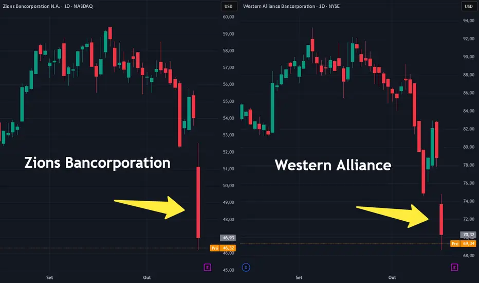 O Zions Bancorporation informou um prejuízo de US$ 50 milhões em dois financiamentos comerciais e industriais, enquanto a Western Alliance revelou ter iniciado um processo judicial por fraude corporativa. No caso do Zions, o problema está ligado ao colapso da fabricante de autopeças First Brands, que expôs falhas na supervisão dos credores e levantou dúvidas sobre a transparência do mercado de crédito.