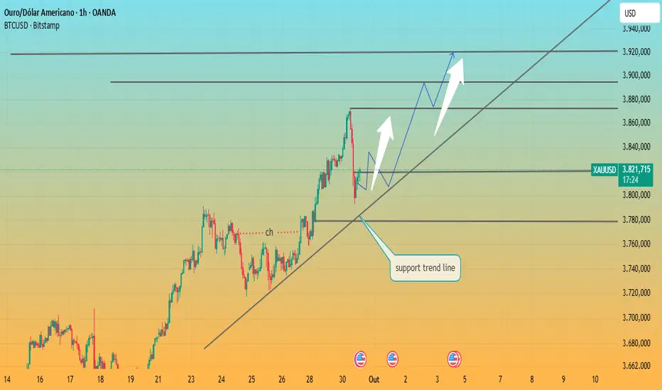 XAU/USD – Suporte de linha de tendência de alta visando 3.910–3.