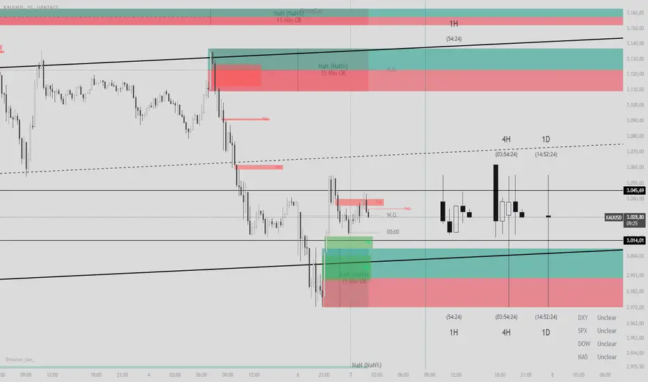 Bora pra mais uma! O ouro **deu aquela respirada bonita** depois do dump, mas ainda **não entregou a entrada dos sonhos**. A região dos **3.004**, onde tá o OB de 4H junto da liquidez varrida, **ainda não foi tocada**. Ou seja: os tubarões estão ali esperando, e a gente tá com o arpão na mão!
