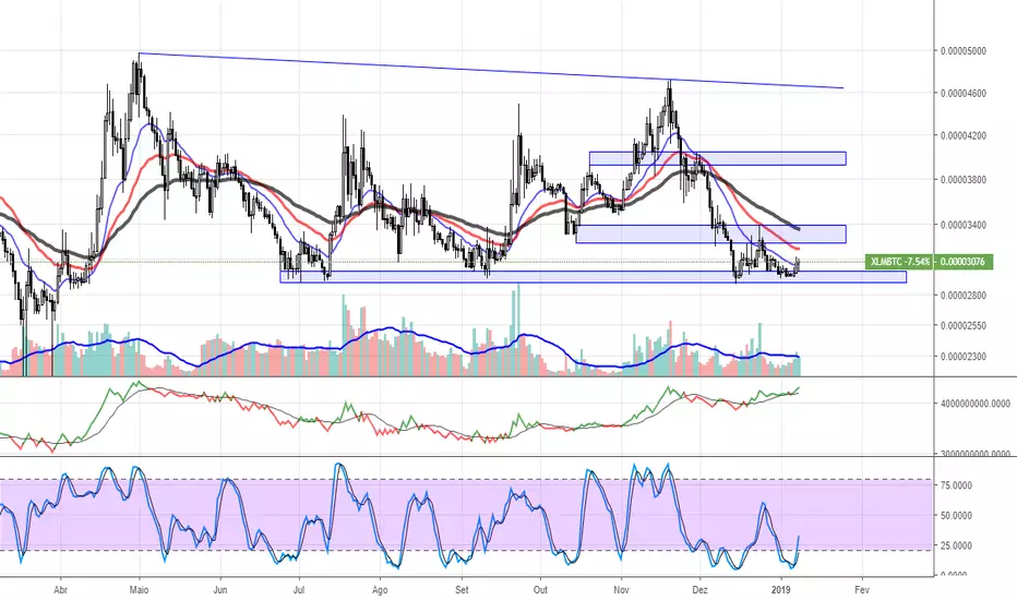 A XLMBTC parece querer subir dessa região de suporte relevante.