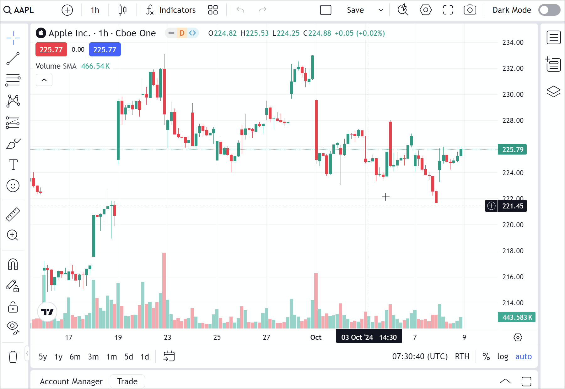 Users can reset the price scale when it is in a non-default state. Note that the Reset price scale option will not appear in the context menu with adjustments such as moving the scale to the left or switching to logarithmic mode.