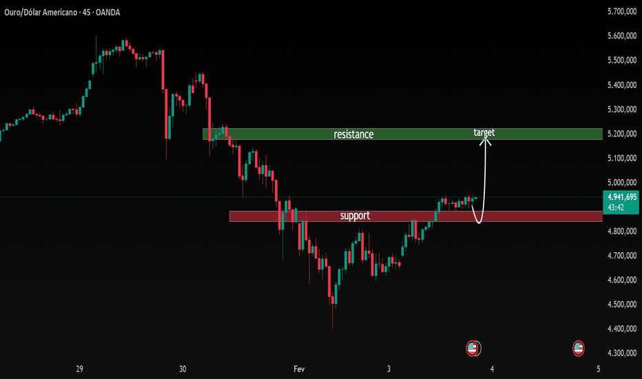 Enquanto o preço se mantiver acima da zona de suporte, é provável um movimento em direção à resistência (target). Um breve retorno ao suporte com rejeição clara reforçaria ainda mais esse cenário.