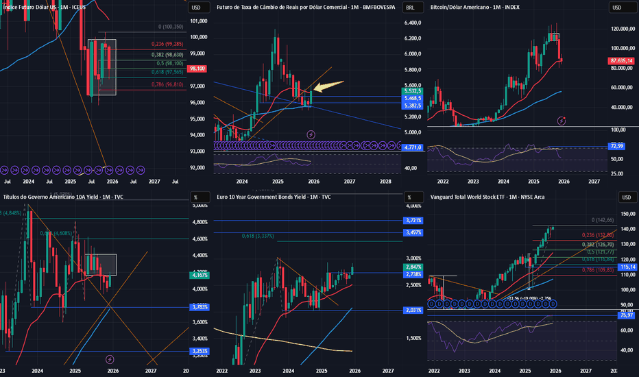 Abaixo seguem três gráficos em close, que ajudam a visualizar melhor essa região de suporte e a entender os possíveis cenários de curto e médio prazo. A reação do preço dentro dessa faixa tende a trazer pistas importantes sobre continuidade ou perda de força do movimento atual.